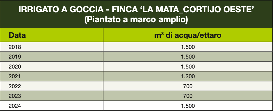 Prova con irrigazione e con terra asciutta presso il Centro di Ricerca “Las Hazuelas”.