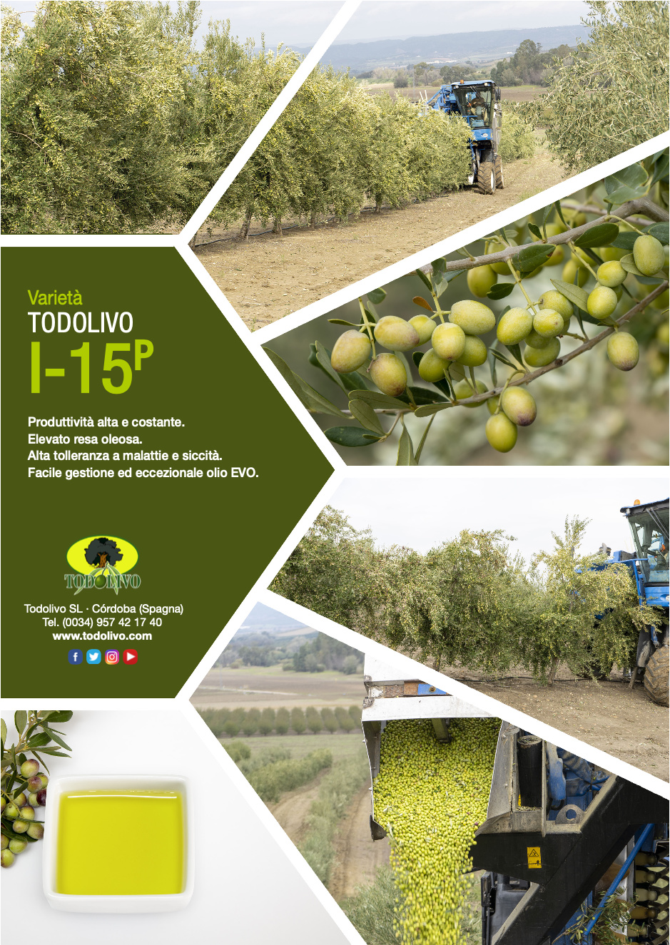 - Todolivo I-15P: 9.057 kg olive/ha e un 23% di rendimento grasso.